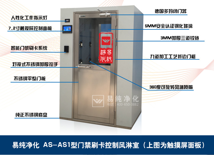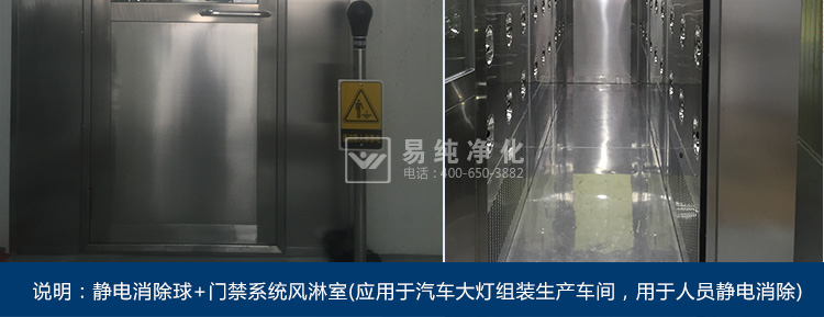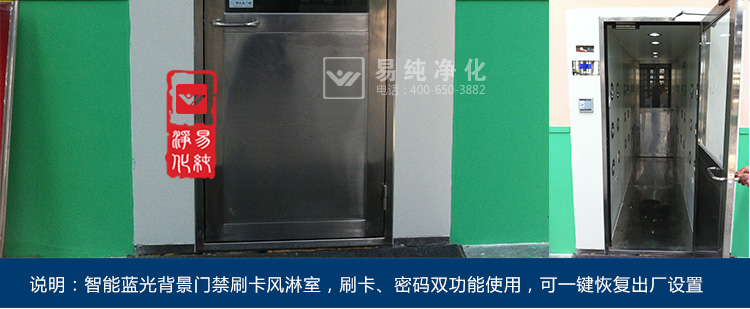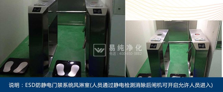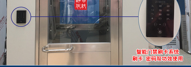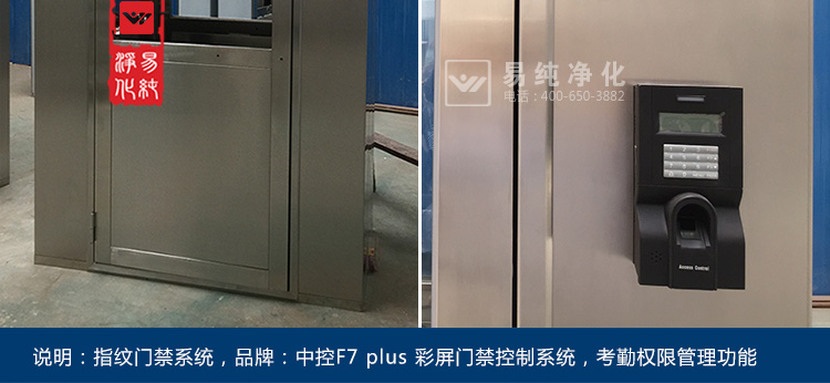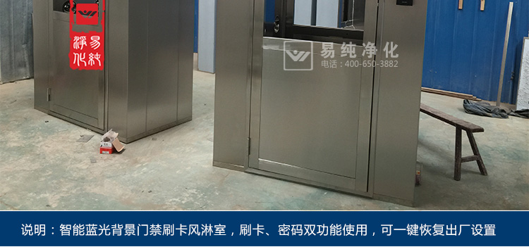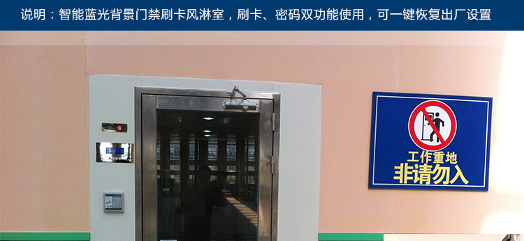 门禁控制风淋室是风淋室的一种特殊管理控制的形式,主要对于进入车间的人员进行身份识别管理,通常采用指纹、密码或人脸识别。同时为了防止人员将静电带入车间,通常一些电子净化车间的风淋室还会在进入车间的入口处加装闸机和静电消除装置。
