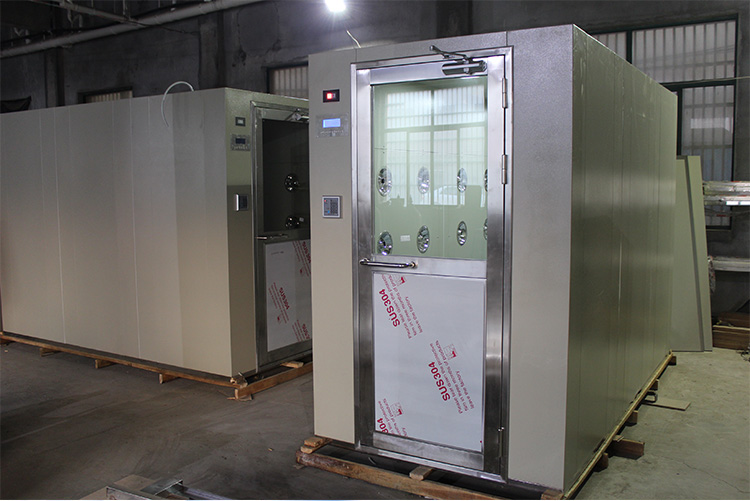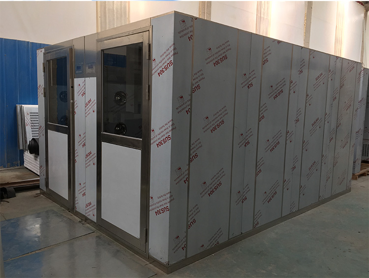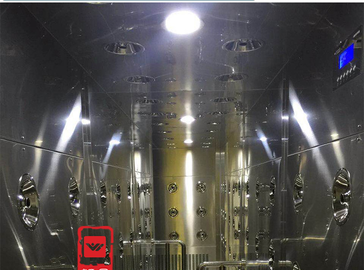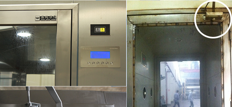 不间断通行风淋室:意为人员不间断、不停留,直接通过风淋室,以达到吹淋效果同时节约吹淋时间。一般为电子车间或电磁生产企业,因人员较多而采用此不间断通行风淋室。