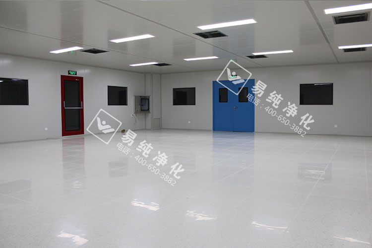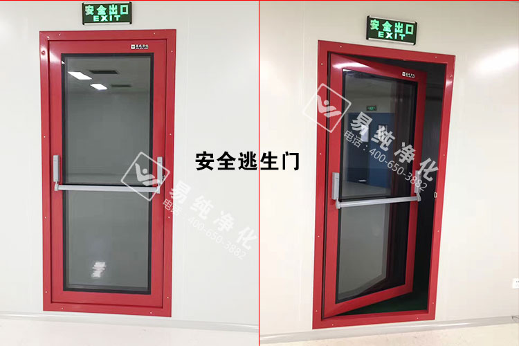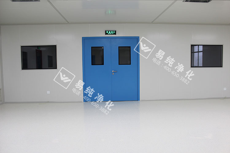 车间内部全部采用A1级净化板材,芯材为琉阳镁芯材净化板,地板采用LG品牌PVC防静电地板,墙体设置安全门,此安全门为易纯专业定制摁压式安全门,全透明钢化玻璃,也是此次工程的一大亮点。顶部采用48W超薄型LED灯具,吸顶安装,既美观又节能。传递窗采用双层中空门,门体嵌入式安装,内底部圆弧设置无死角。门窗全部采用双层中空窗及钢制成品门,带德国多玛闭门器。