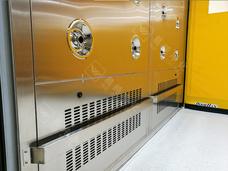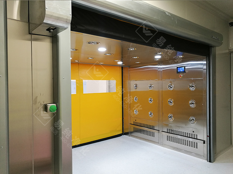 汽车零部件生产车间PVC快速卷帘门货淋室-三侧吹风