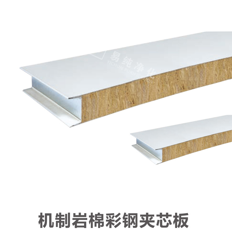 采用中高密岩棉为芯材,镀锌或彩涂板为面层(两层)及高强度粘剂,通过高速连续自动化成型机加温、加压复合,经过修边、开槽、下料而成的新一代建筑装潢板材,具有保温隔热、安装便捷的特点。是同类(夹芯板系列)中耐火性能最强的一种新型防火板材。