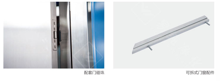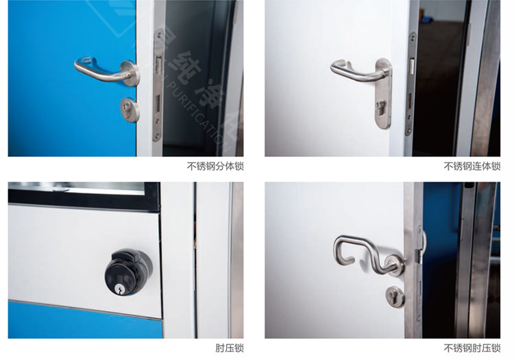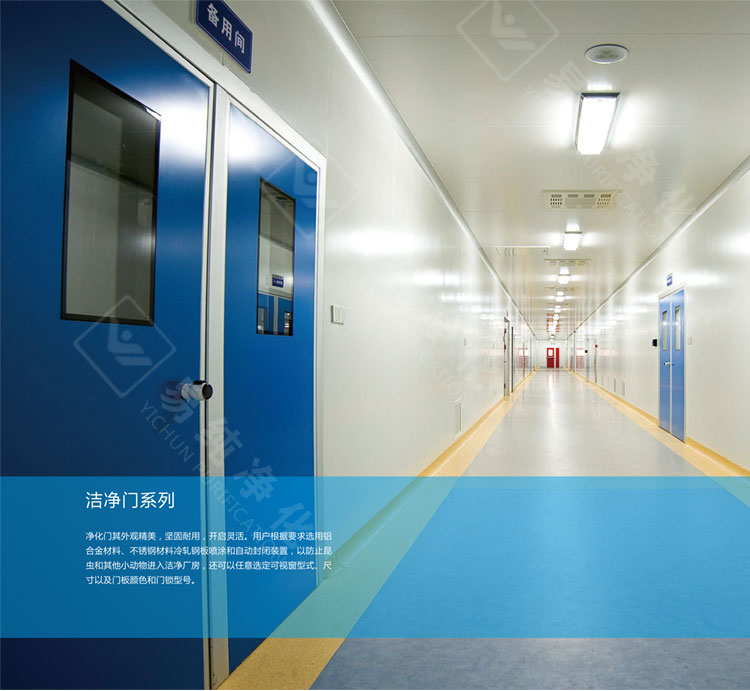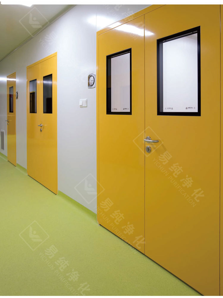 净化门其外观精美,坚固耐用,开启灵活。用户根据要求选用铝合金材料、不锈钢材料冷轧钢板喷涂和自动封闭装置,以防止昆虫和其它小动物进入洁净厂房,还可以任意选定可视窗型式、尺寸以及门析颜色和门锁型号。