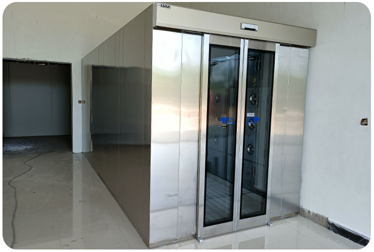 此次采购的风淋室,主要应用于大厅人员入口,一般会采用自动门风淋室,因人员较多,一般会采用5米以上长度。涂装车间一般采用2-3人左右的风淋室,用于去除进入车间的人员身体表面的灰尘,保护汽车漆面在喷漆过程中达到一个无尘的环境,避免灰尘颗粒对喷漆面产生影响。