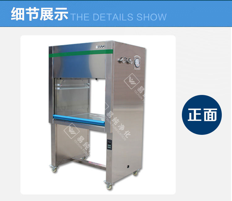 产品技术参数: 净化工作台是一种提供无尘工作环境的净化设备,具有使用方便、结构简单、效率高,它已被广泛使用于电子、国防精密仪器、仪表、制药、组培、实验室等各个工业和科研部门。