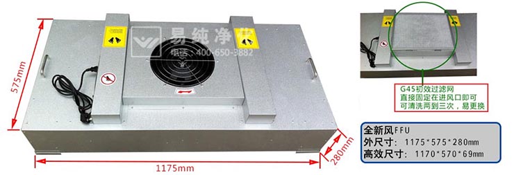 | FFU尺寸mm | 575W*575L*280H | 575W*1175L*280H | 1175W*1175L*280H |