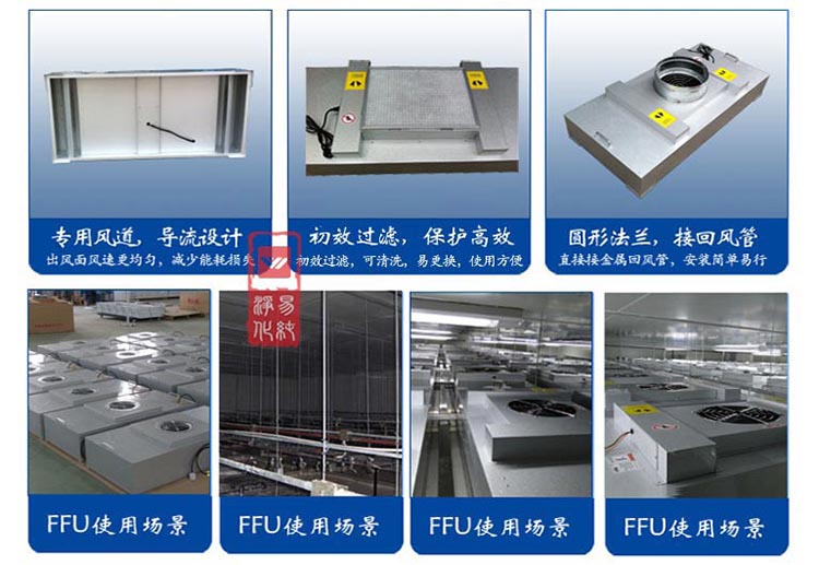 应用范围:FFU可模块化连接使用,使得FFU广泛应用于无尘室、无尘操作台、无尘生产线、组装式无尘室和局部百级等应用场合。